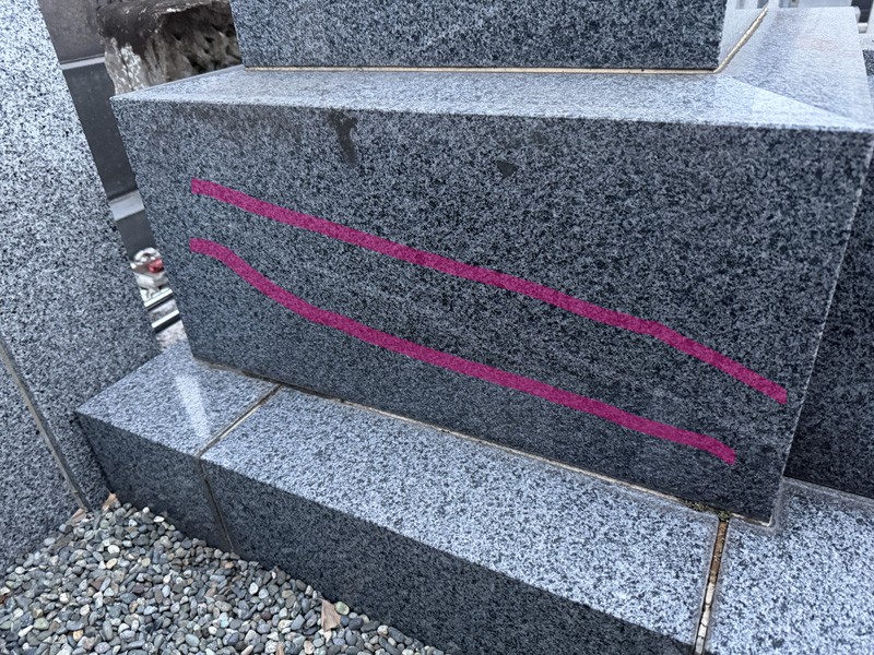 ただ、これが非常に厄介でG654系など、グレー系の石材では、時間の経過とともにこの「黒い線」が白い線へと変化していくことがあるのです。