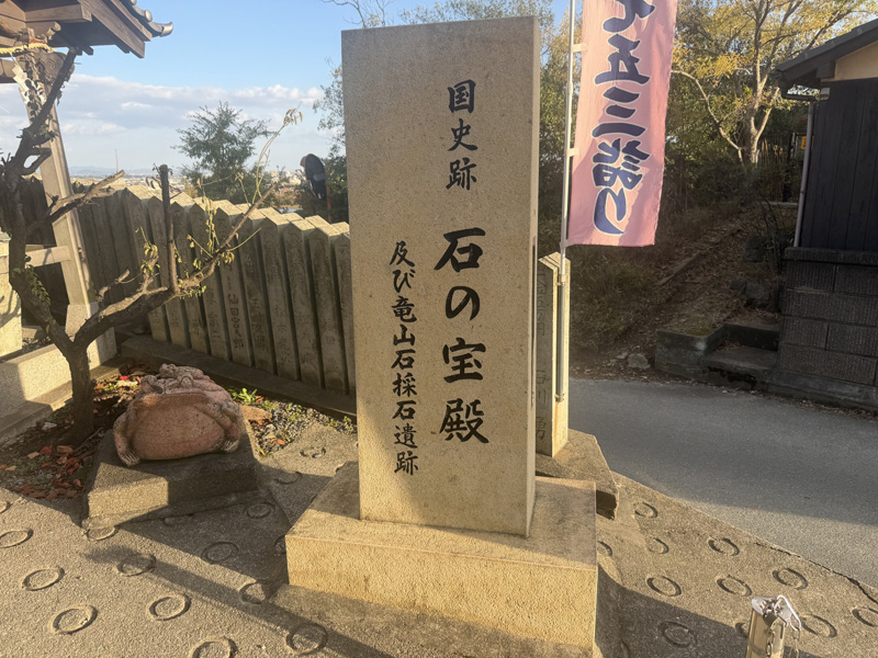 竜山石の採掘場近くに位置し、境内には「石の宝殿」と呼ばれる巨大な石が祀られています。