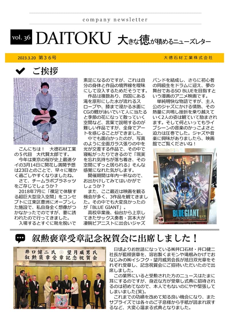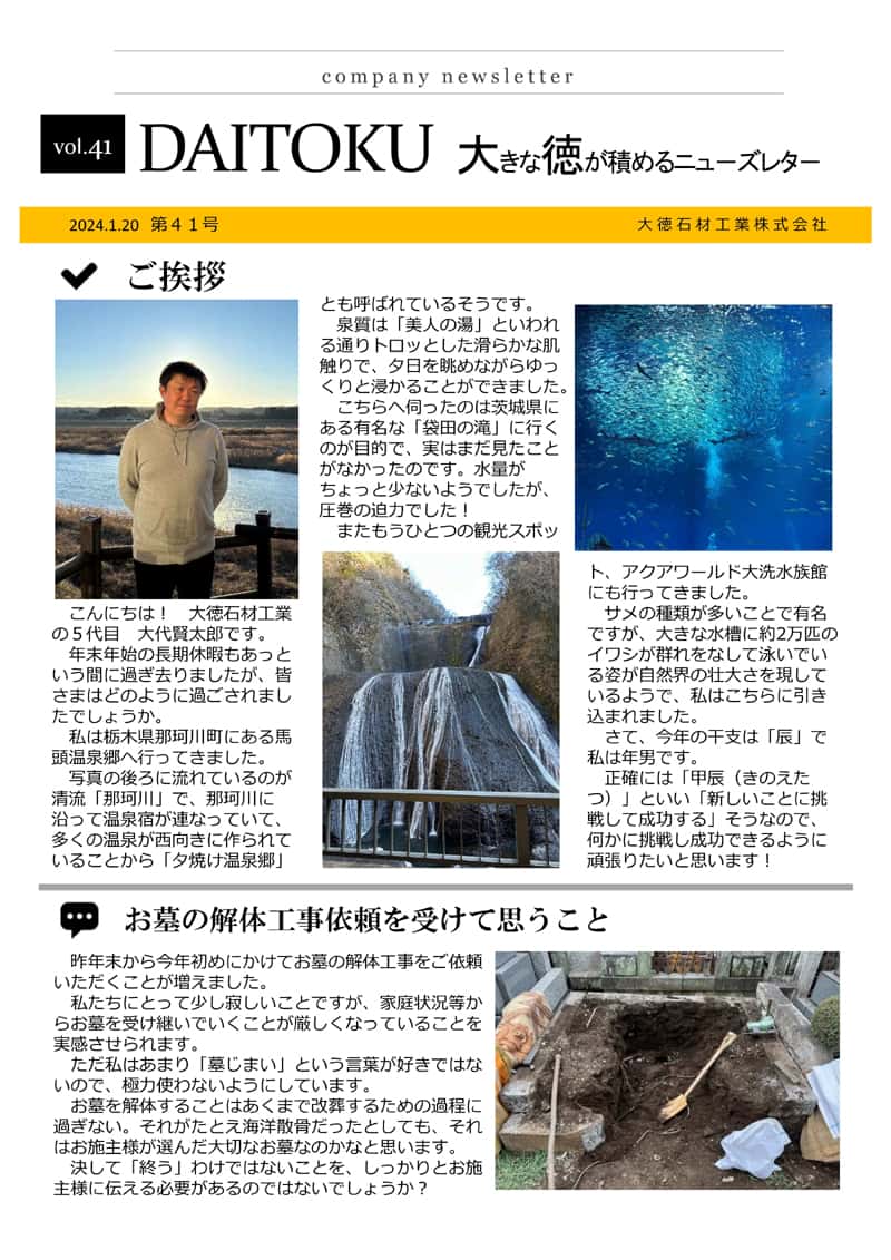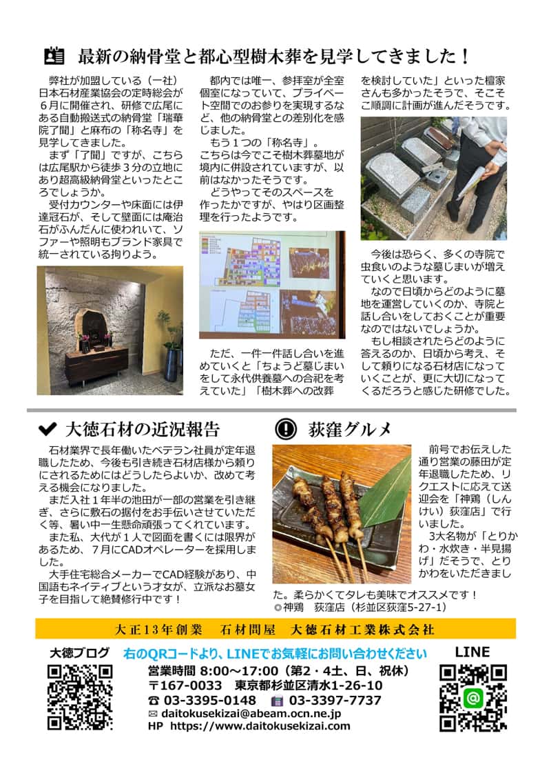 当社では、「石材店様とのご縁を大切にしたい」 との思いで、定期的に自社でニューズレターを発行しています。ご縁づくりとして、これからも発行していけるように、がんばってまいります!